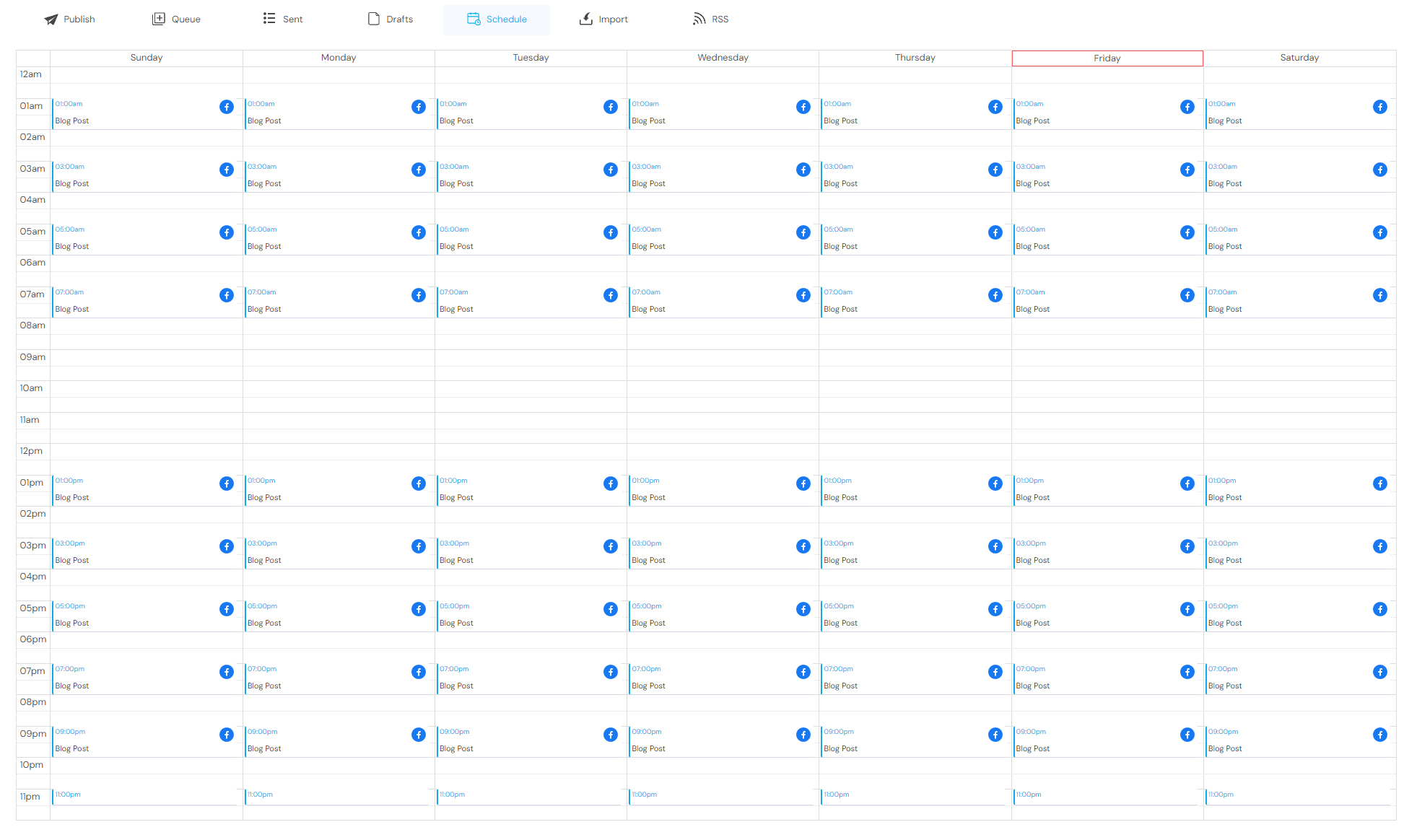 The first thing I do I jump into Buffer and re-schedule some of the older posts I had on this page.