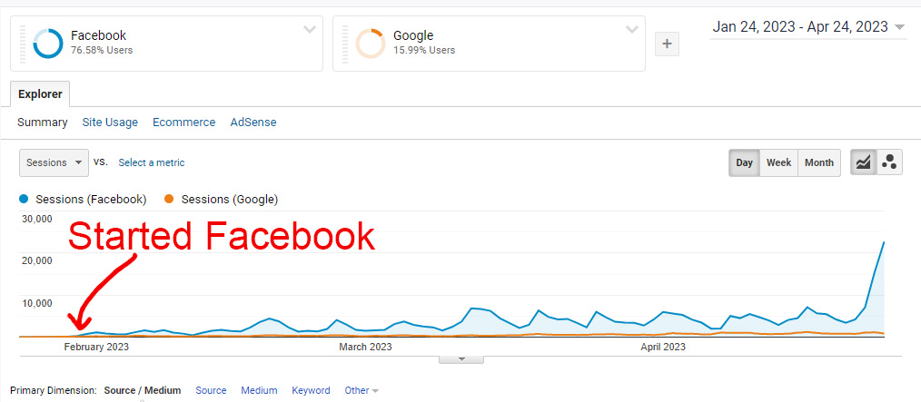 My course shows you exactly how I went from zero to over 100,000 organic Facebook sessions in a single day.
