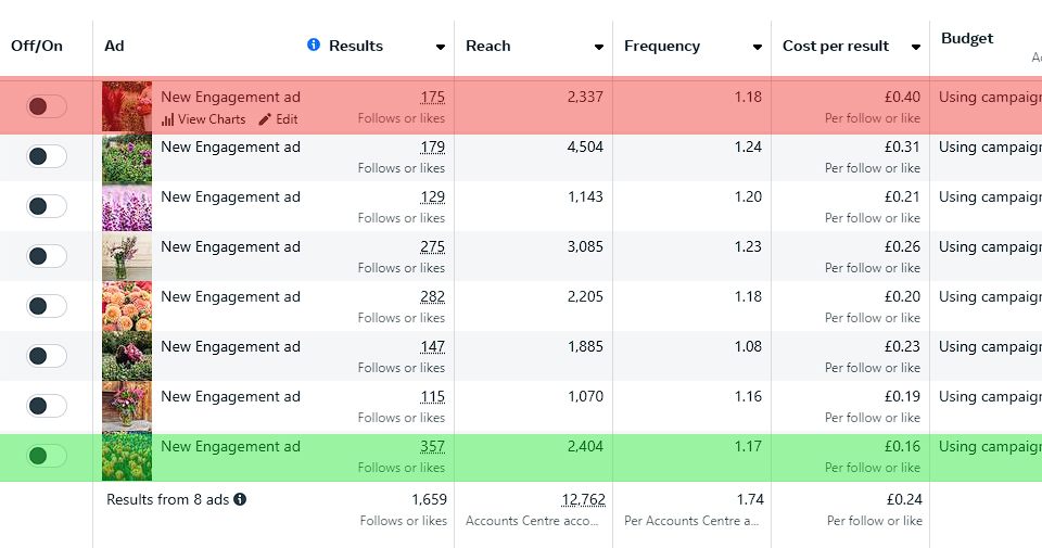 So, all the ad settings are identical - the only difference being the image used.